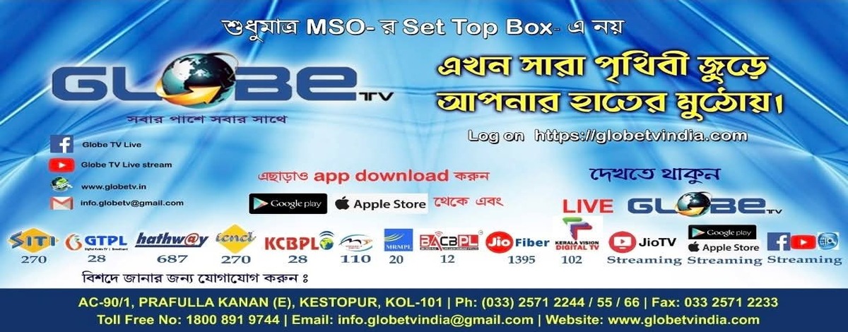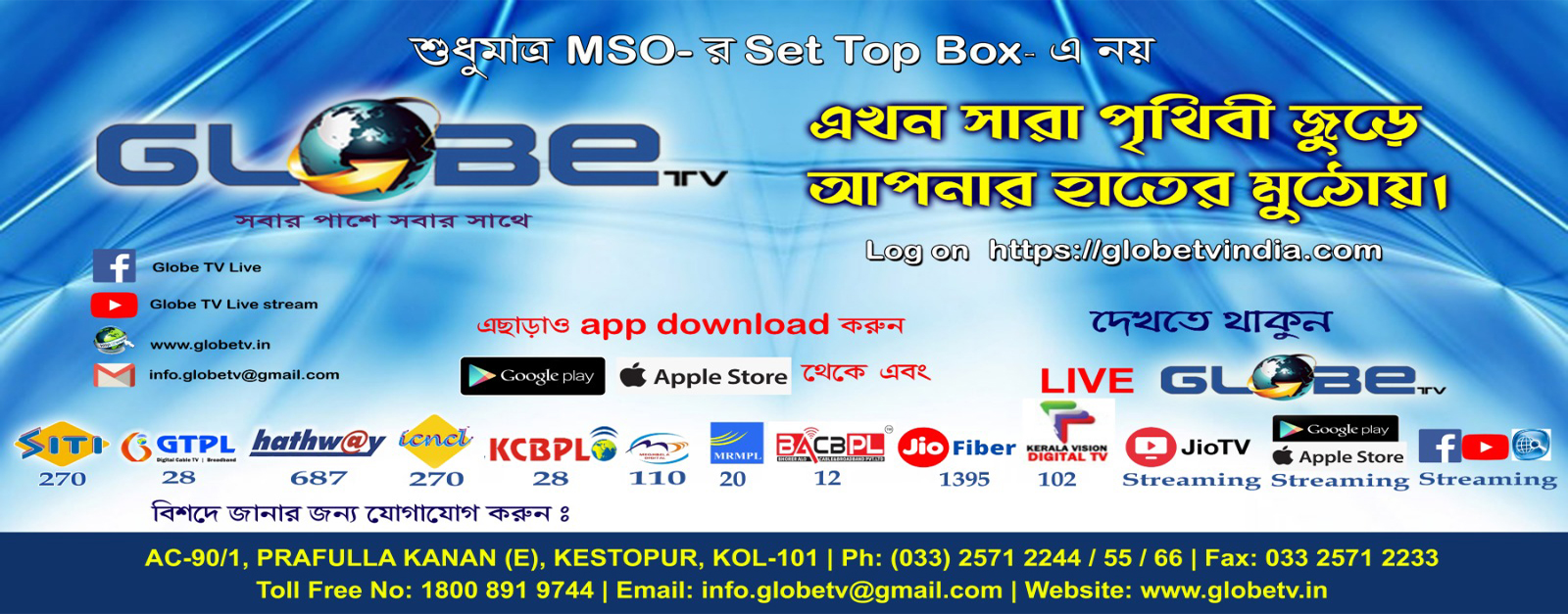 GLOBE TV is an International Television Channel. It broadcasting from Kolkata, West Bengal, India. GLOBE TV is also a new milestone in audio-visual world and a fast growing Television channel with the largest cable network…